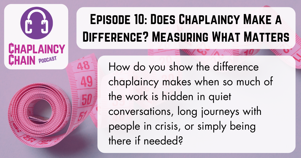 In this episode, the team wrestle with impact, evidence and story: who are we measuring chaplaincy for, what really counts as “success”, and how can chaplains themselves help shape the questions?